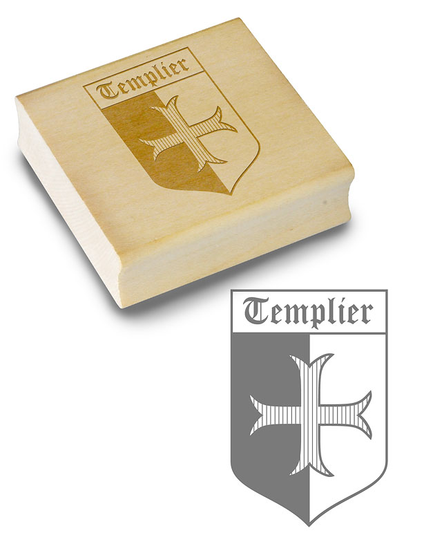 Tampon encreur en bois, blason templier avec une croix templière pattée 8 pointes rentrées.