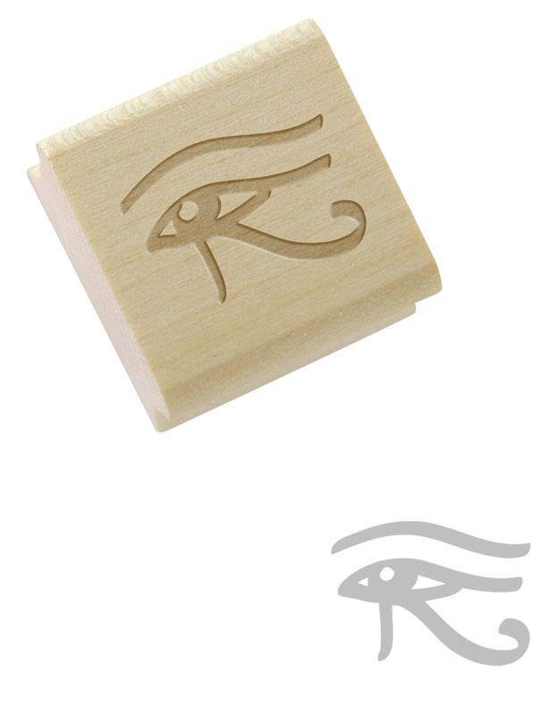 Tampon encreur en bois, motif Oudjat (œil d'Horus)