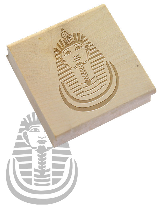 Tampon encreur en bois avec le pharaon Psousenn�s 1er (masque funéraire).