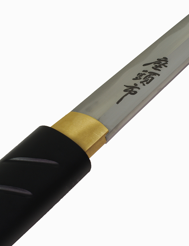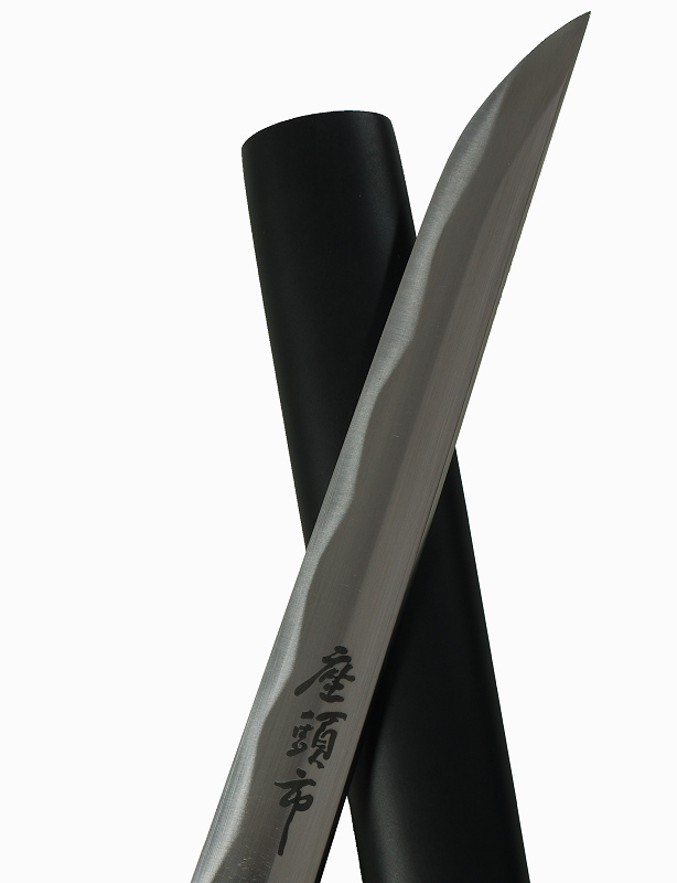 Ce grand couteau de samourai est conçu sans tsuba (garde) et sans sageo. Il reflete l’esprit de Zatoïchi