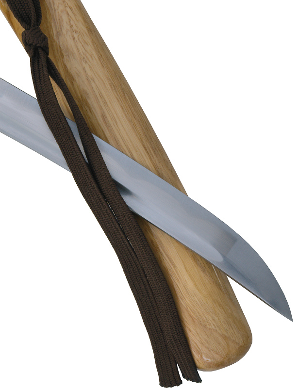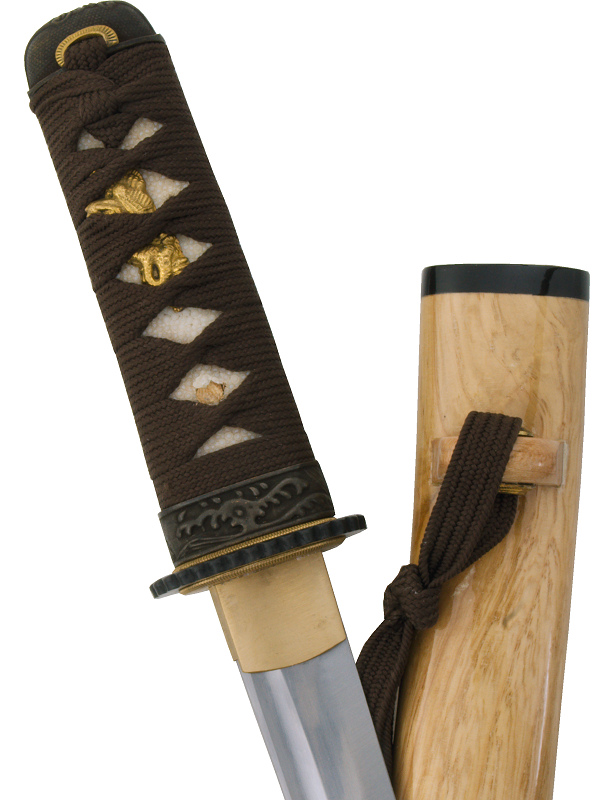 La sobriété élégante du « Natural Spirit » s’exprime dans sa saya en bois naturel verni, son ito et son sageo marron, ainsi que sa poignée recouverte de galuchat (peau de raie) sous un tressage brun. La tsuba en acier découpé au laser et noirci vient renforcer son caractère martial tout en préservant une esthétique raffinée.