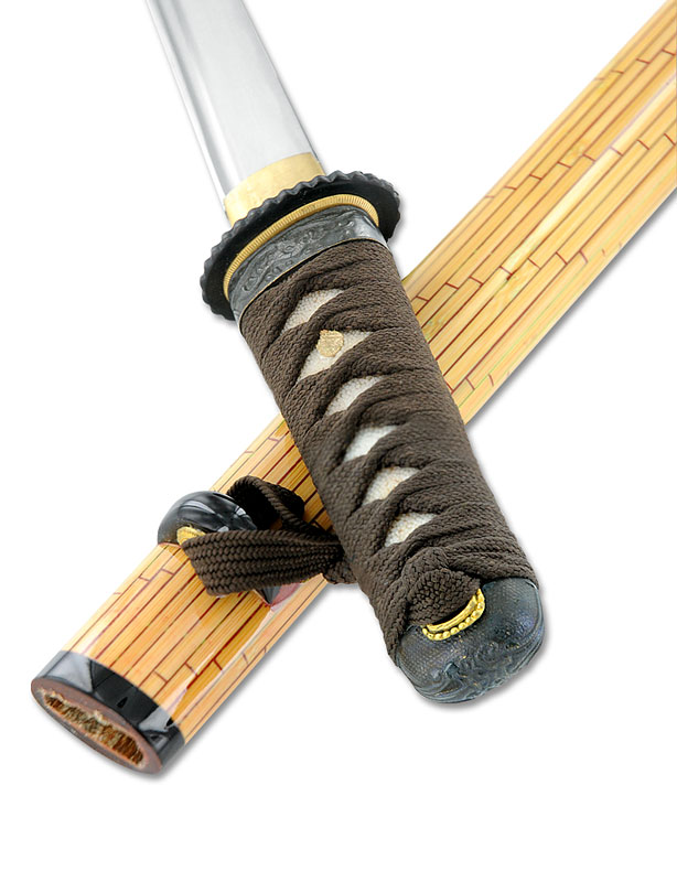 Ito et sageo marrons. Fourreau en bois laqué effet bambou. Mune : hikushi.