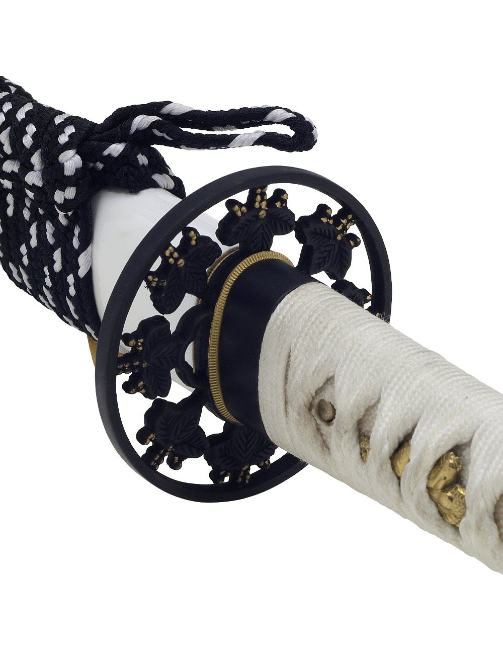 - Poignée en bois habillée de coton blanc selon le style Hineri-Maki classique.