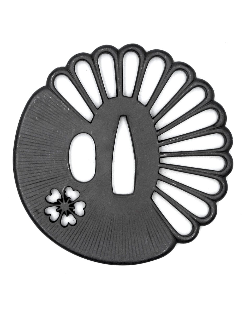 Dans l’univers du sabre japonais, la tsuba occupe une place essentielle, à la fois protectrice et symbolique. Bien plus qu’une simple garde, elle est le reflet des valeurs, de la sensibilité et parfois du rang de son porteur. La tsuba Kikusui s’inscrit dans cette tradition raffinée, en associant deux motifs floraux majeurs de la culture japonaise : le sakura, symbole de l’éphémère, et le kiku, emblème de longévité et d’harmonie. Cette combinaison, historiquement appréciée durant l’époque Edo, exprime l’équilibre entre la brièveté de la vie et la recherche de permanence, un concept profondément ancré dans la voie du sabre.
