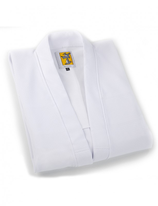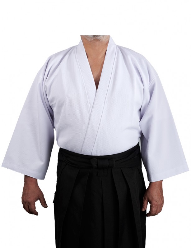 Veste de Iaïdo blanche Budogi, idéalement faite pour la pratique des arts martiaux japonais tels que le Iaido, le Kendo ou encore l’Aikido.
