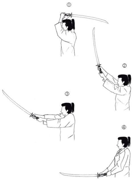 La manière correcte d’utiliser un Katana est de le projeter comme une ligne de pêche et de découper en ramenant la lame vers le corps, les coudes près du corps.